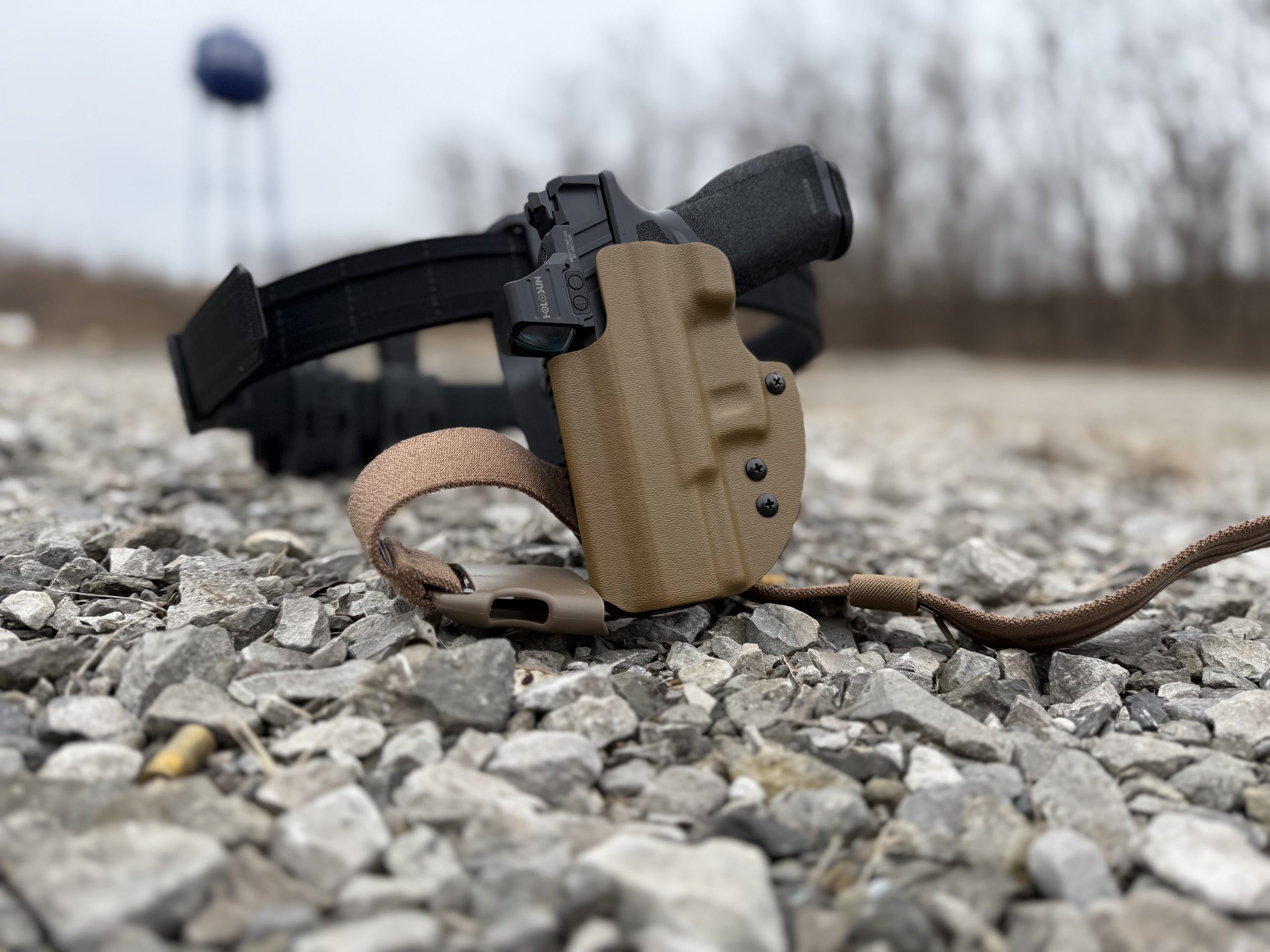 The Mach Series Duty & Range Holster is Designed to be used for competition, range use, or duty use! The holster comes standard with holes to fit any attachment on the market! Where you use Safariland, G-Code, Bladetech, or any other attachments this holster will accommodate them all!